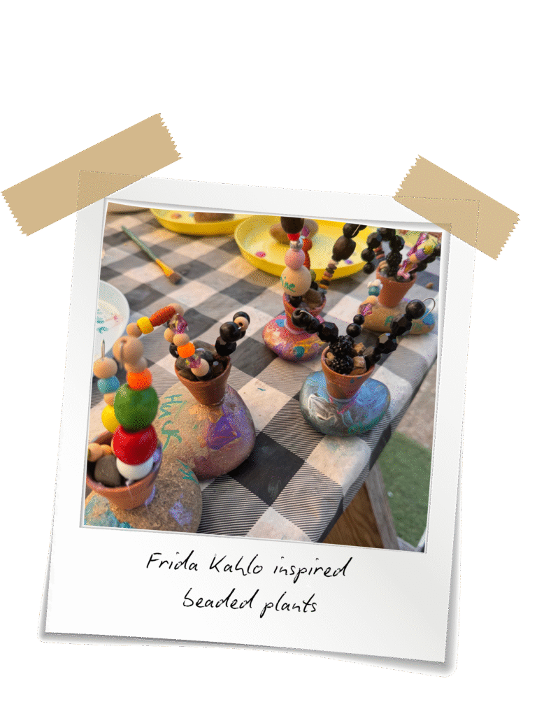 Excited to learn about the incredible artwork of Mexico, we read about Frida Kahlo and were inspired to make brightly colored creations.